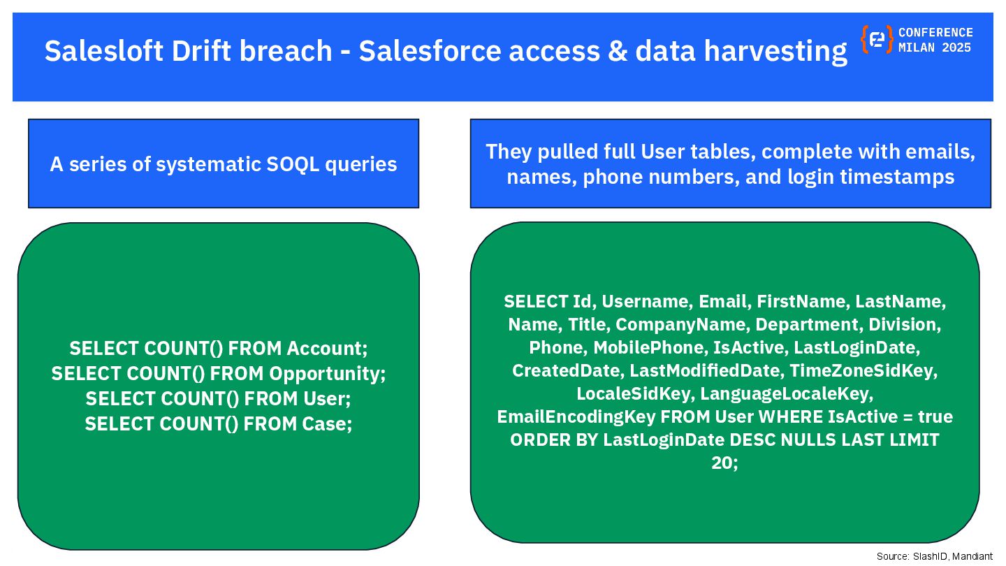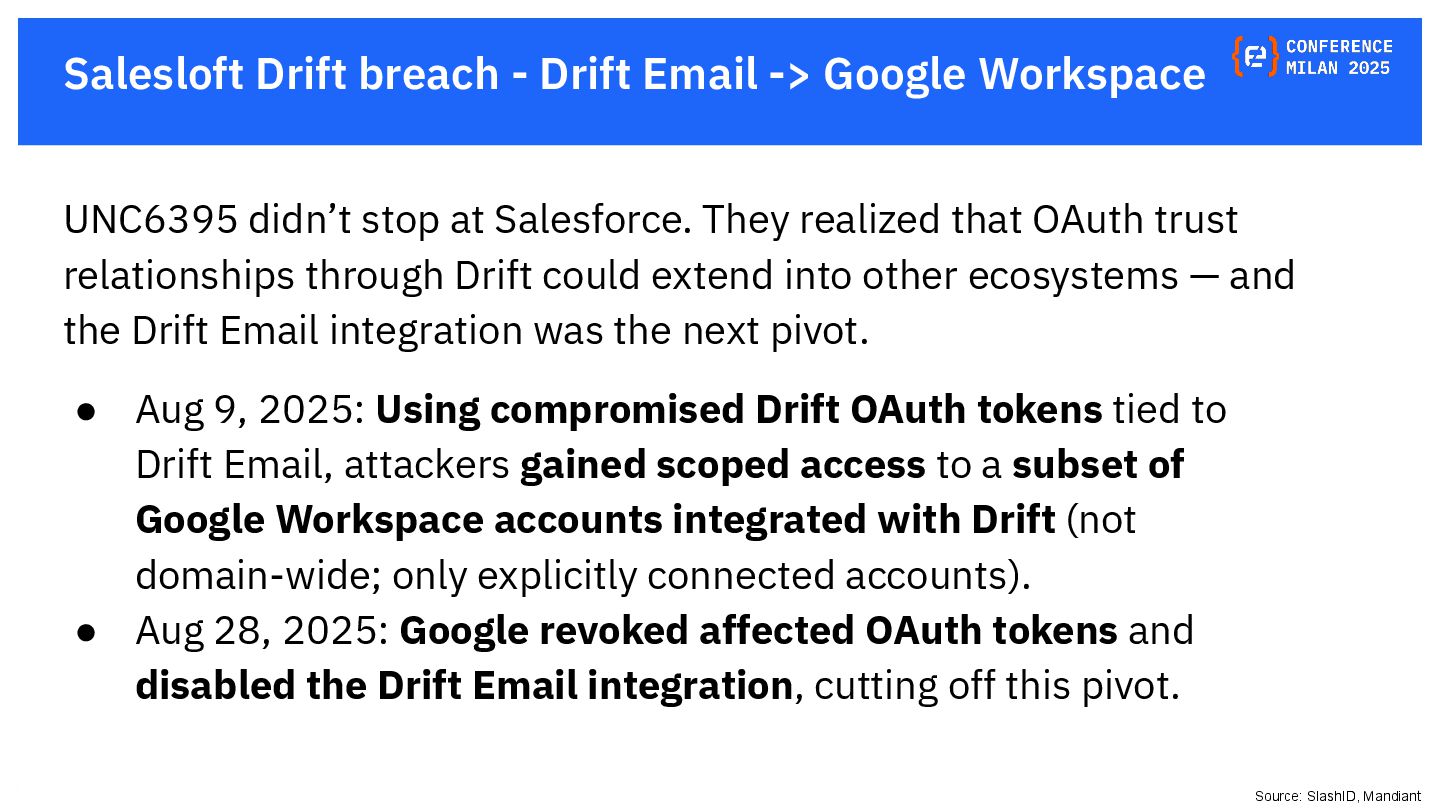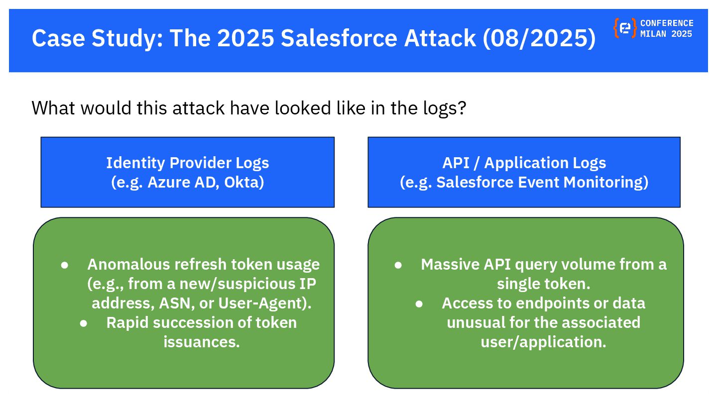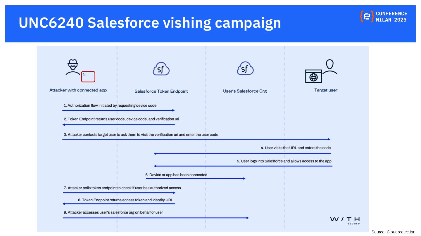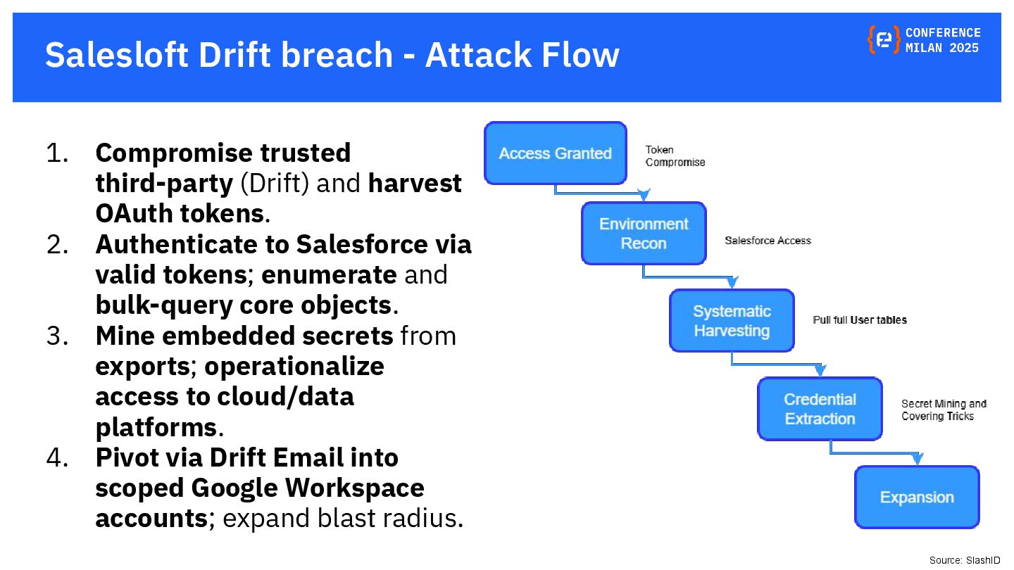 OAuth tokens are the new crown jewels. Once issued, they bypass MFA and give API-level access that is hard to monitor. The opaque nature of their use and the difficulty in monitoring their activity create a dangerous blind spot for security teams, making them a primary target for attackers. This presentation will delve into the lifecycle of OAuth tokens, explore real-world attack vectors, and provide actionable strategies for protecting these high-value assets. We will also review the tactics, techniques, and procedures (TTPs) of notorious gangs like ShinyHunters and Scattered Spider, as demonstrated in the 2025 Salesforce attacks.