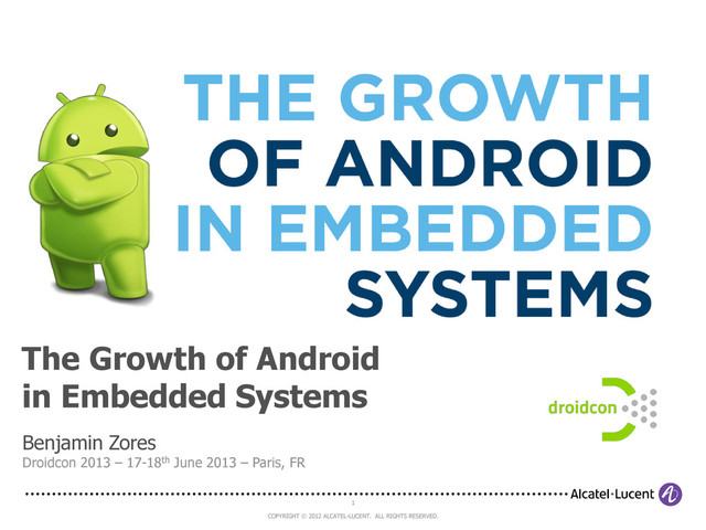 This talk (non presented) reflects a whitepaper that was published for Linux Foundation. It provides a status overview of Android's position towards legacy embedded Linux when it comes to various embedded systems' design. It gives a fair comparison between the 2 OSes and what are each other's weaknesses