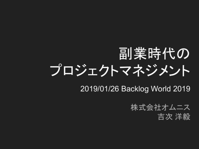 副業時代の プロジェクトマネジメント 2019/01/26 Backlog World 2019 株式会社オムニス 吉次 洋毅