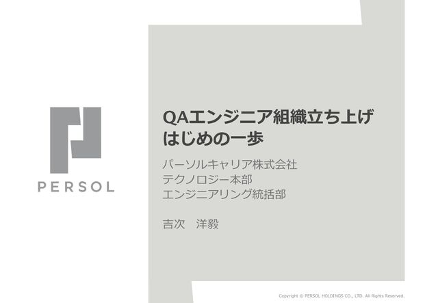 23 • 1⼈⽬のQAエンジニアの要件を定めるのは難しい – ⾜元の課題解決だけではなく⻑期的な組織づくりに⽬を向けられる⼈である必要がある – よって、採⽤要件が盛り盛りになりがち… – 結果的に超⼈要件になる • 組織づくりの経験、採⽤経験、テスト⾃動化経験、テストマネージャの経験、エン ジニアリング知識、多職種との協業経験など… • ロードマップを描く – ⾜元の課題の整理 – 数年単位で考えてどういう状態になっているか、どういう価値提供ができるチームに なっているかを描いておく(と⾔いつつ、⾊々試して模索する側⾯も⼤きい。経路まで は決めれないが⽬的地・⽅⾓くらいは考える) • 採⽤要件の分解 – どちらかと⾔うとある数年単位のロードマップに要件を寄せつつ、できる限り⾜元の課 題をカバーできるようにする – カバーしきれない部分は既存メンバーでカバーできるようにアプローチする 結果、なんとか採⽤に漕ぎ着けた︕