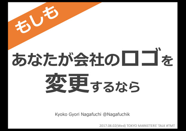 あなたが会社のロゴを 変更するなら Kyoko Gyori Nagafuchi @Nagafuchik 2017.08.02(Wed) TOKYO MARKETERS' TALK