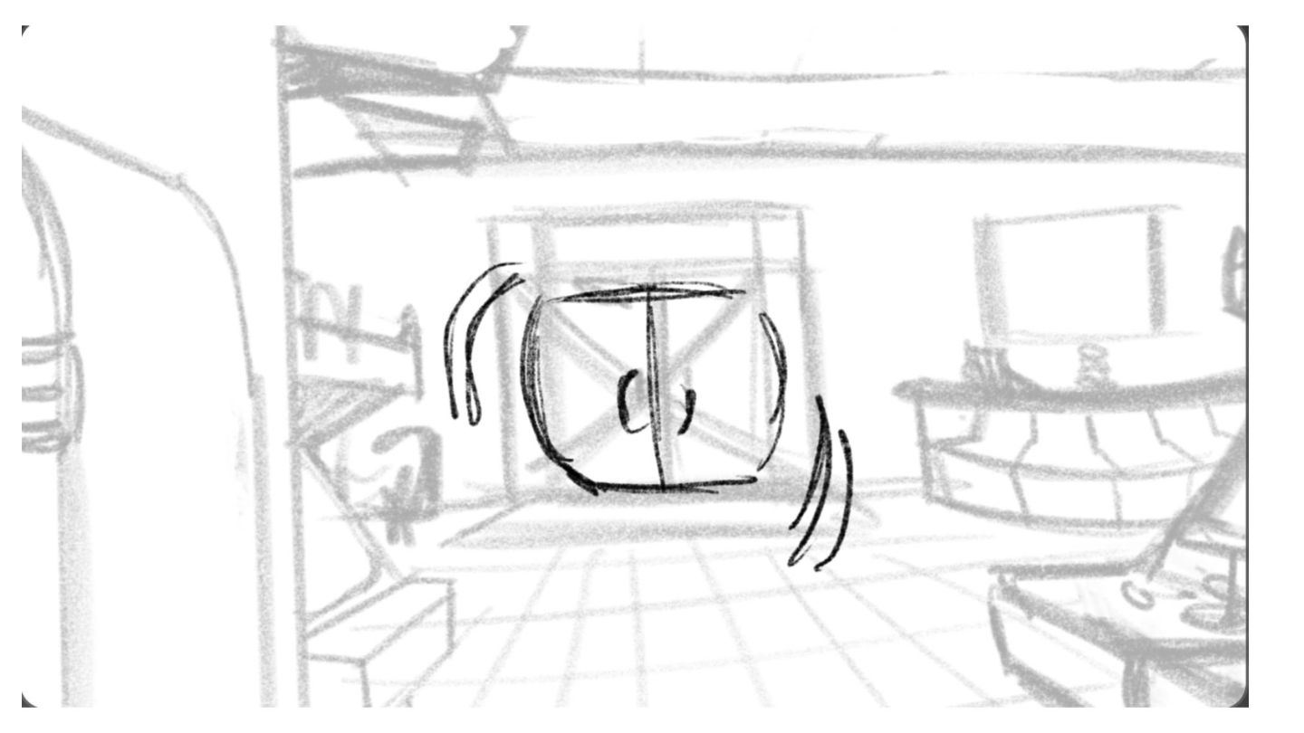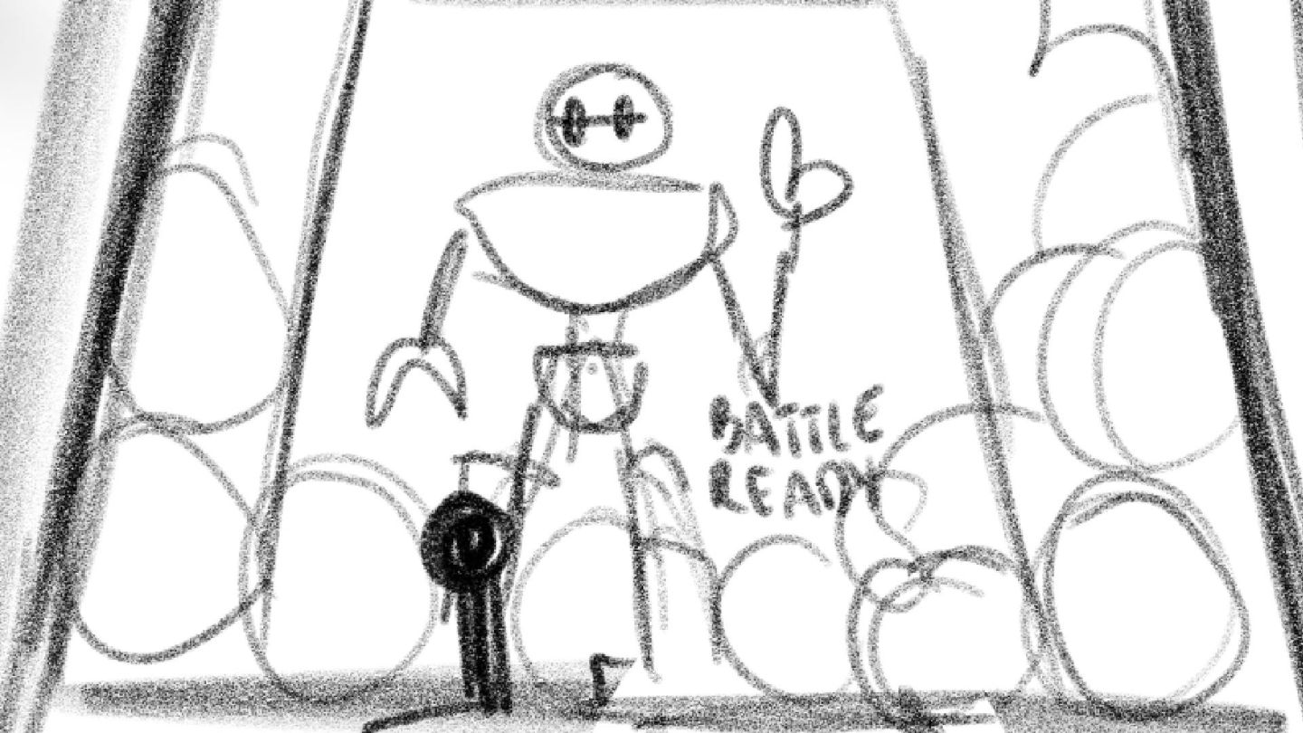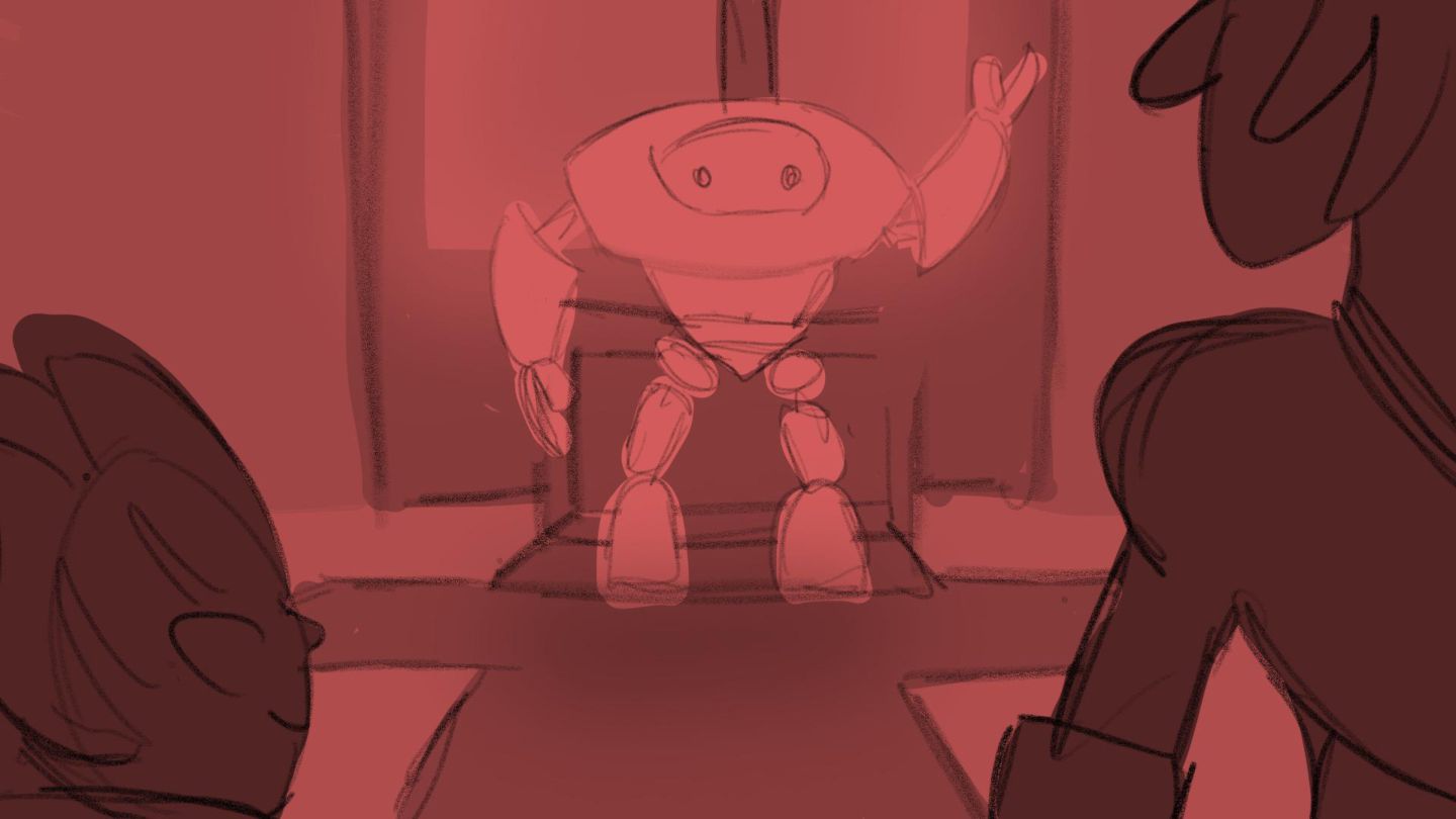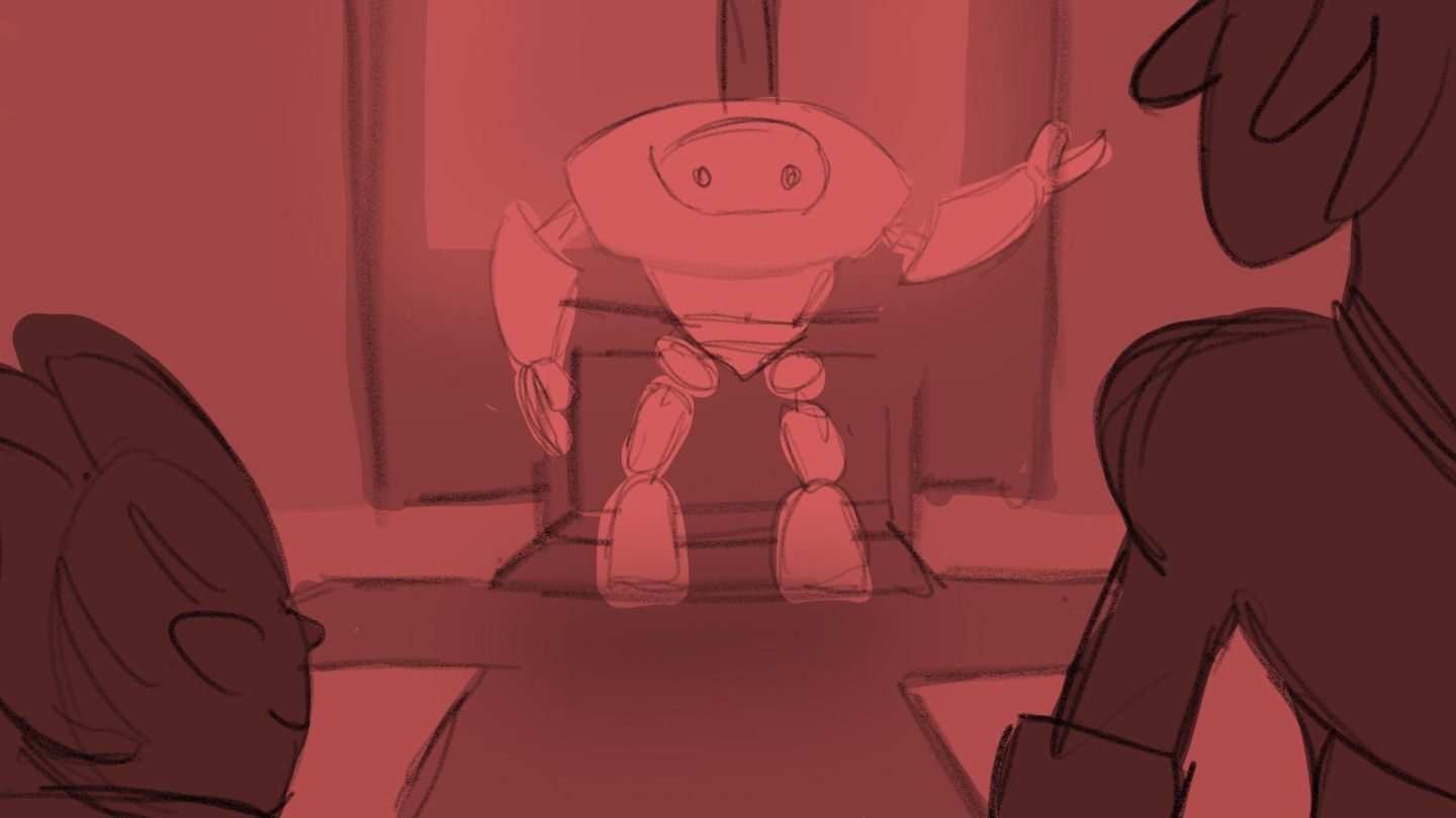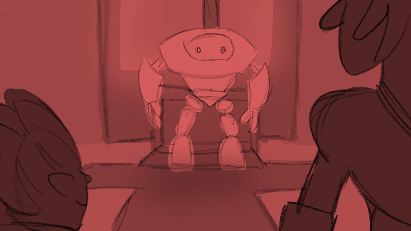HAPPEN. HIS EYES MOVE AS THE ROBOT INFLATES ITSELF UPWARD