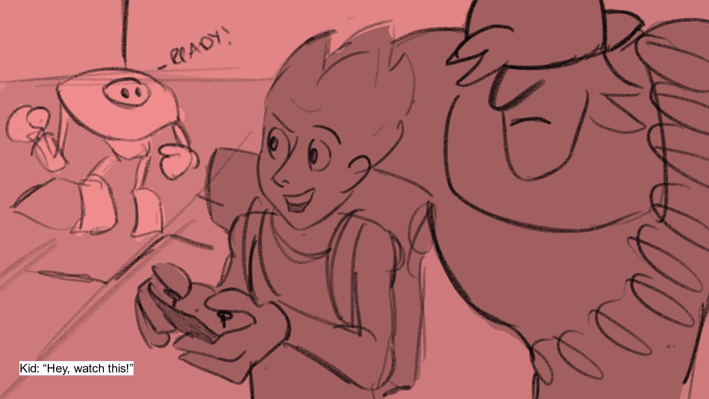 INSERT THE KID LOOK DOWN AND UP AS ASSEMBLY NOISES
