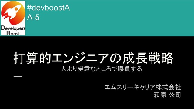打算的エンジニアの成長戦略 エムスリーキャリア株式会社 萩原 公司 人より得意なところで勝負する #devboostA A-5