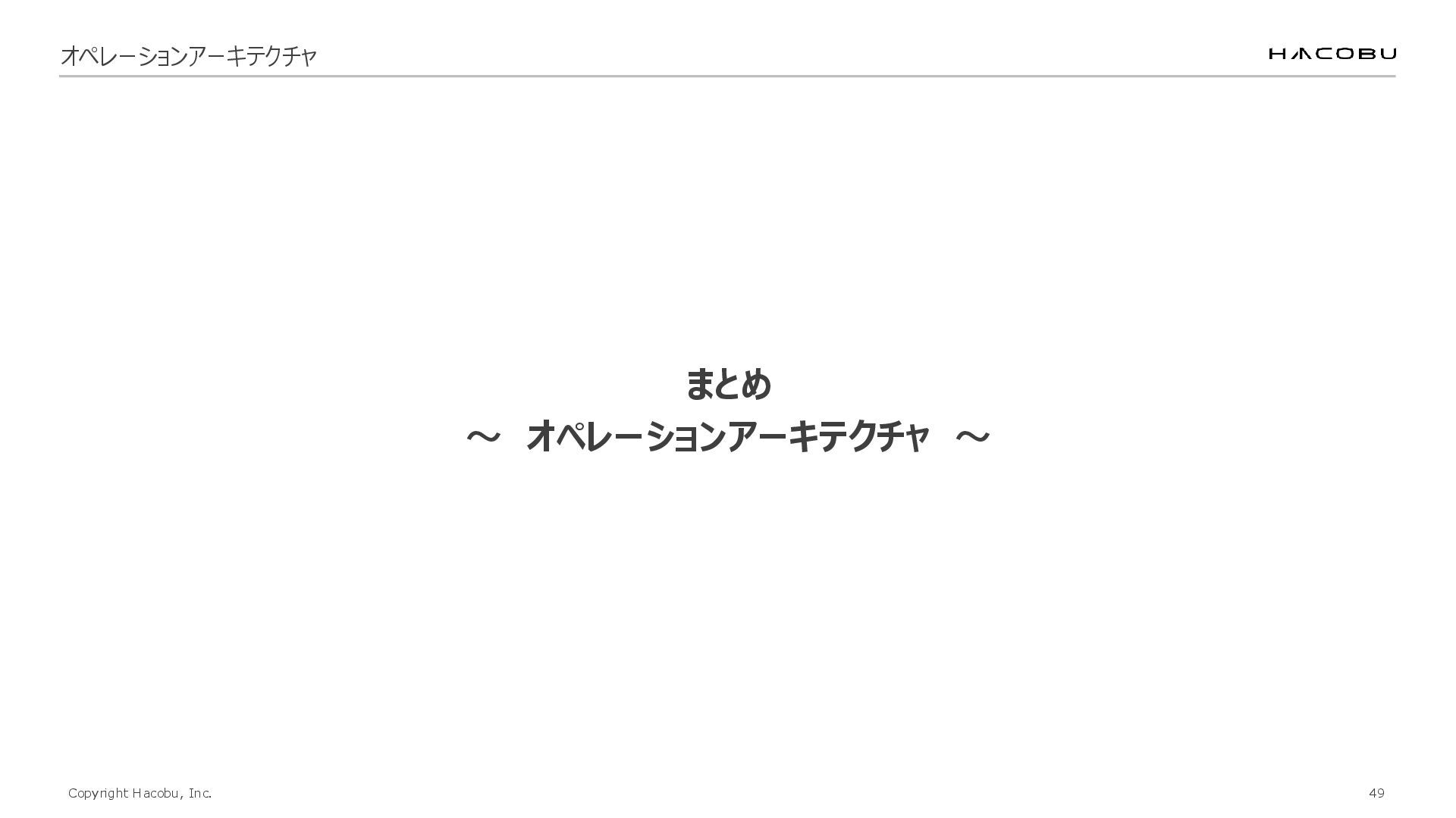 Copyright Hacobu, Inc. 49 オペレーションアーキテクチャ まとめ 〜 オペレーションアーキテクチャ 〜