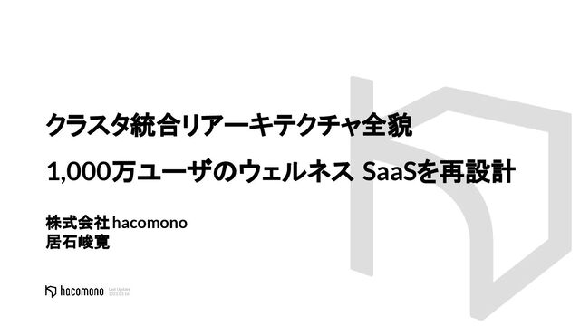 クラスタ統合リアーキテクチャ全貌~1,000万ユーザーのウェルネスSaaSを再設計~