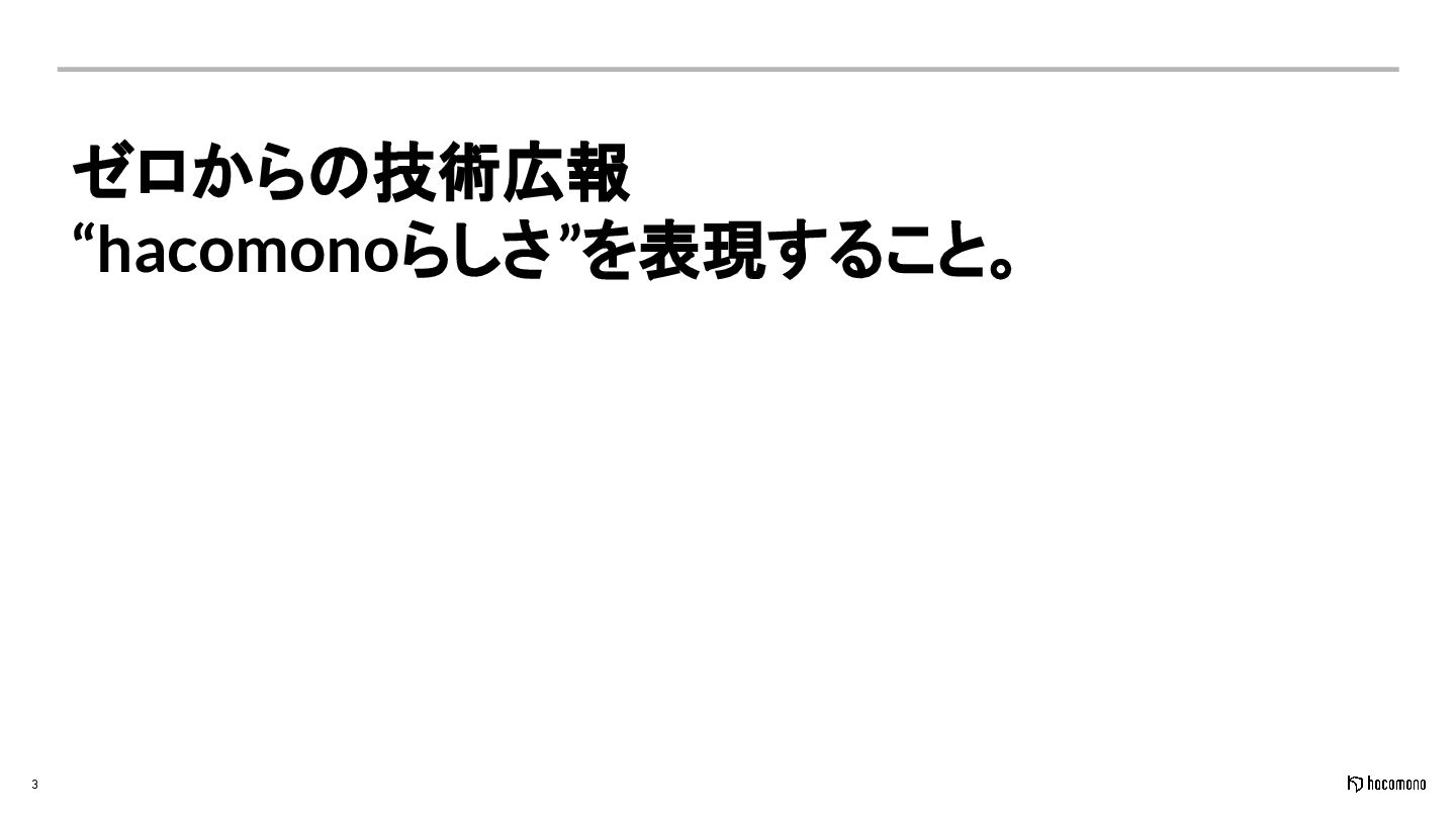 3 ゼロからの技術広報 “hacomonoらしさ”を表現すること。
