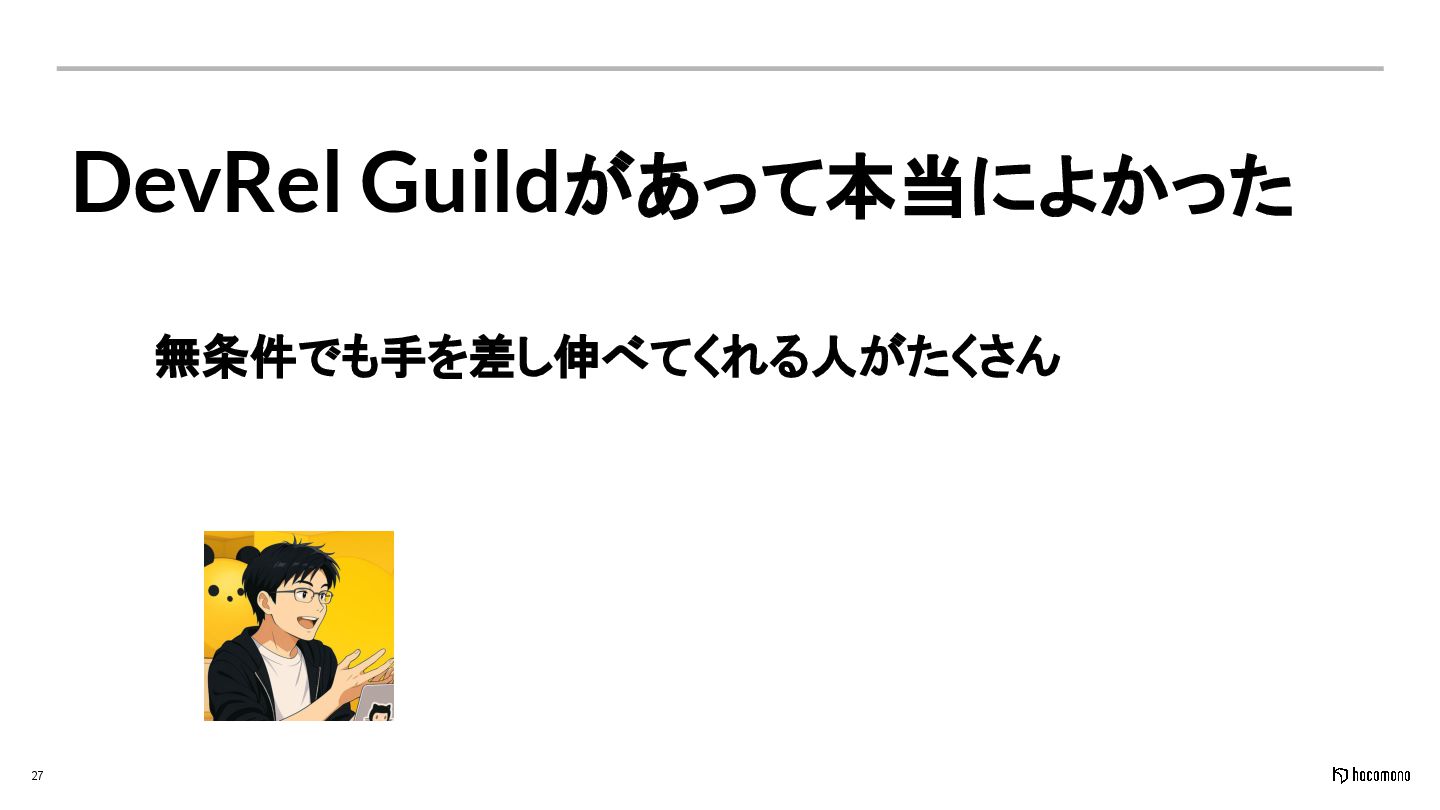 27 無条件でも手を差し伸べてくれる人がたくさん DevRel Guildがあって本当によかった
