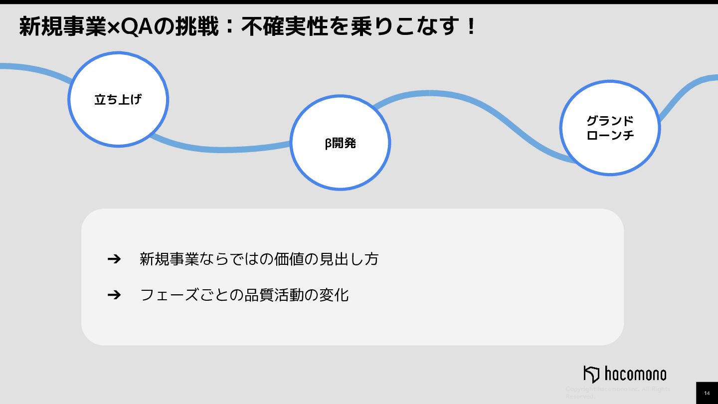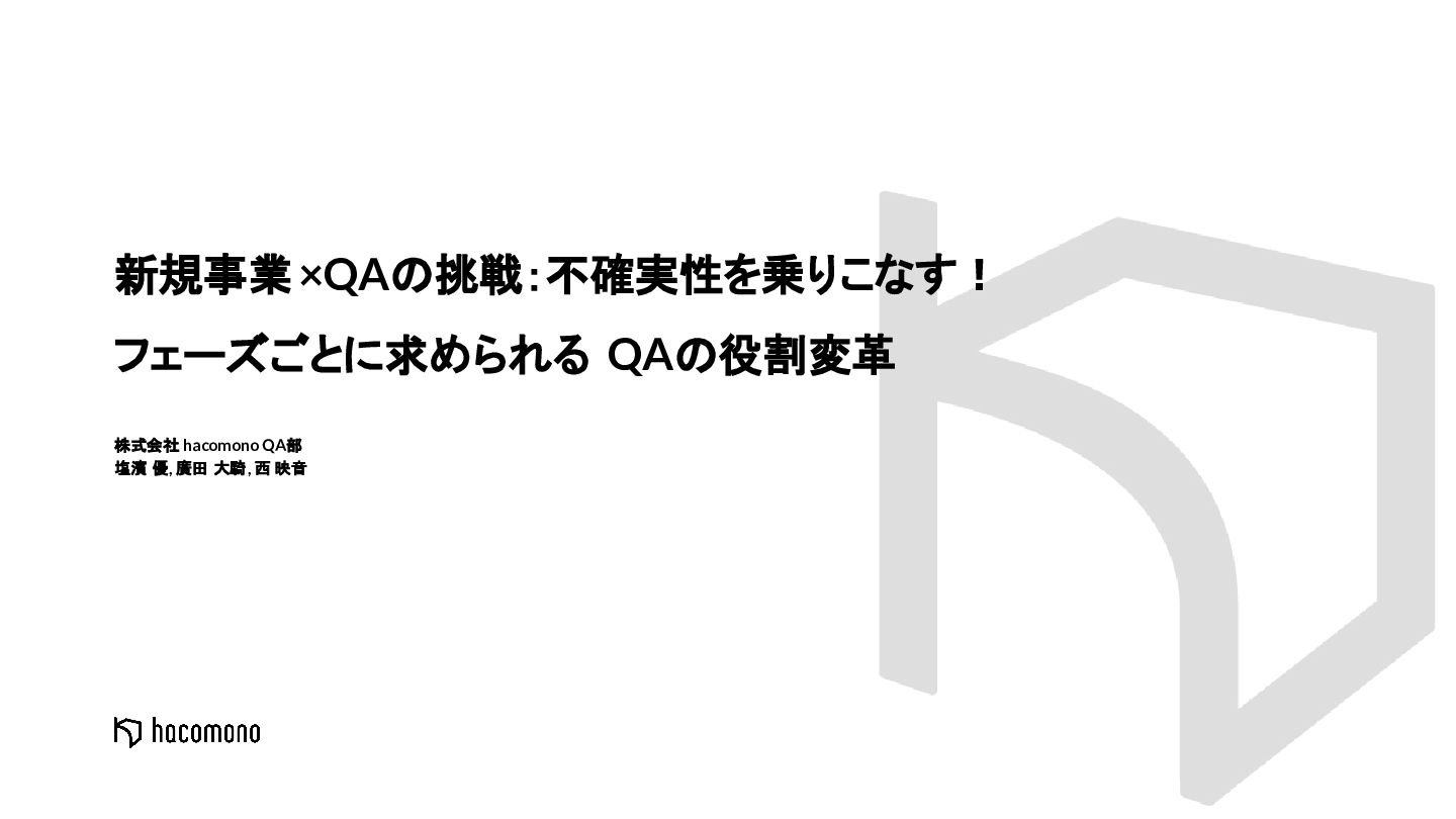 『新規事業×QAの挑戦:不確実性を乗りこなす!フェーズごとに求められるQAの役割変革』