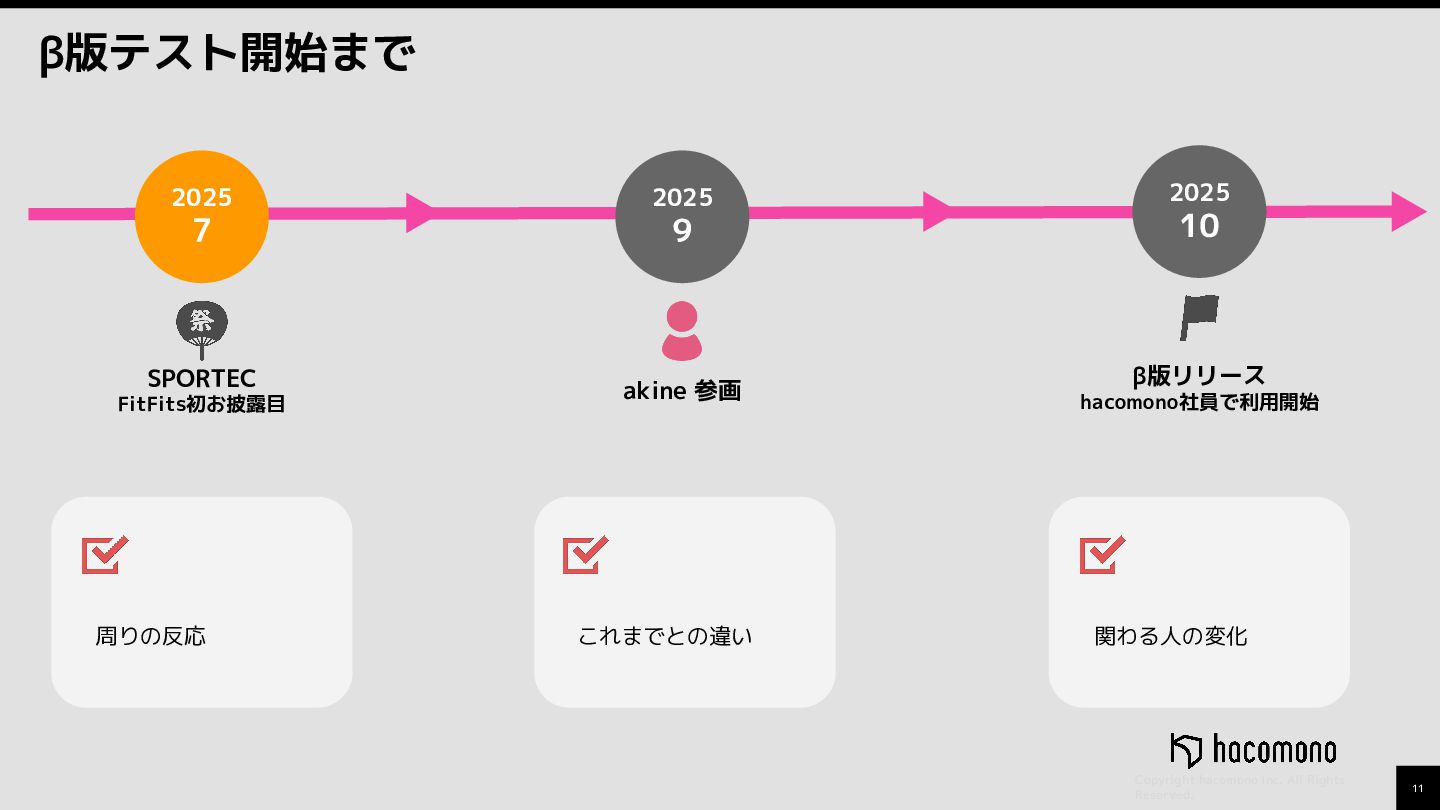 11 Copyright hacomono Inc. All Rights Reserved. β版テスト開始まで 2025 9