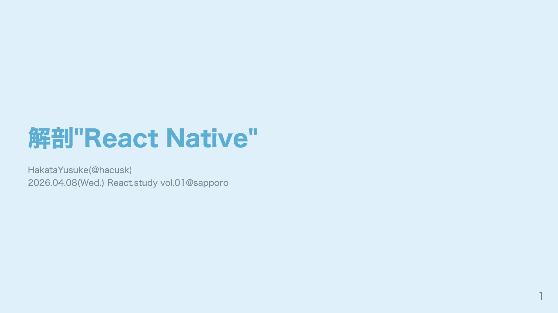解剖"React Native" HakataYusuke(@hacusk) 2026.04.08(Wed.) React.study vol.01@sapporo 1