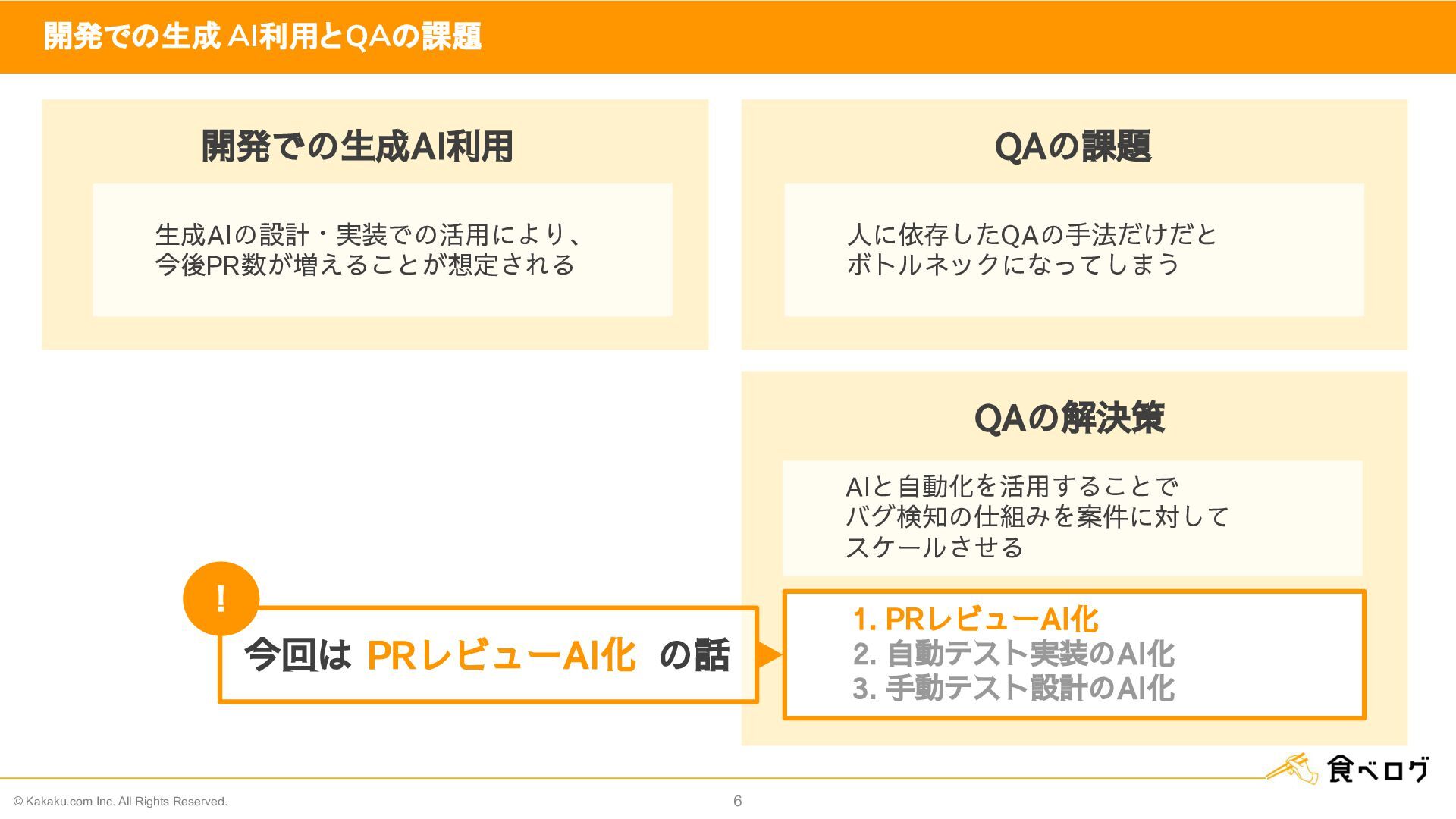 3. © Kakaku.com Inc. All Rights Reserved. 6 開発での生成 AI利用とQAの課題 QAの課題