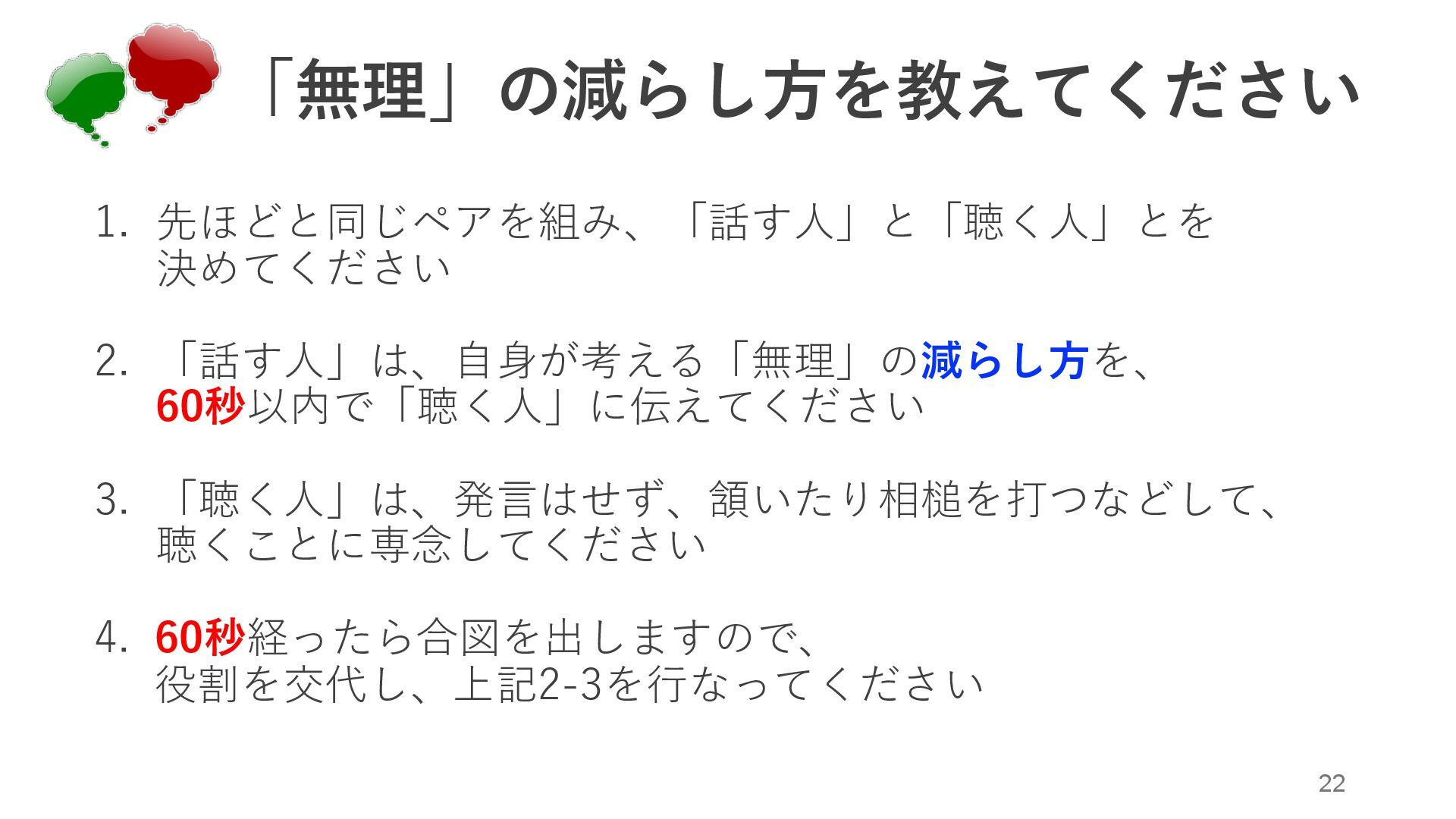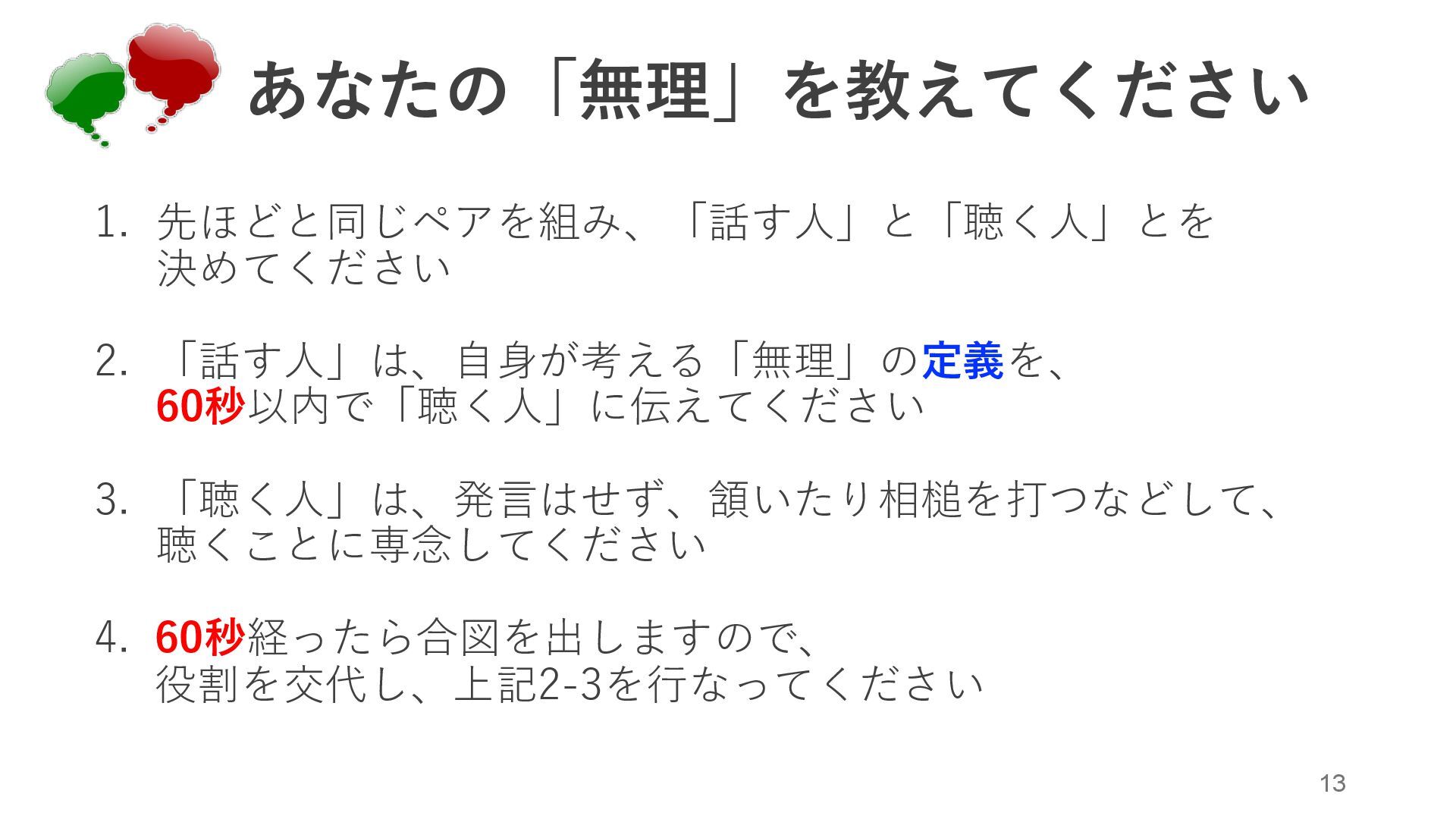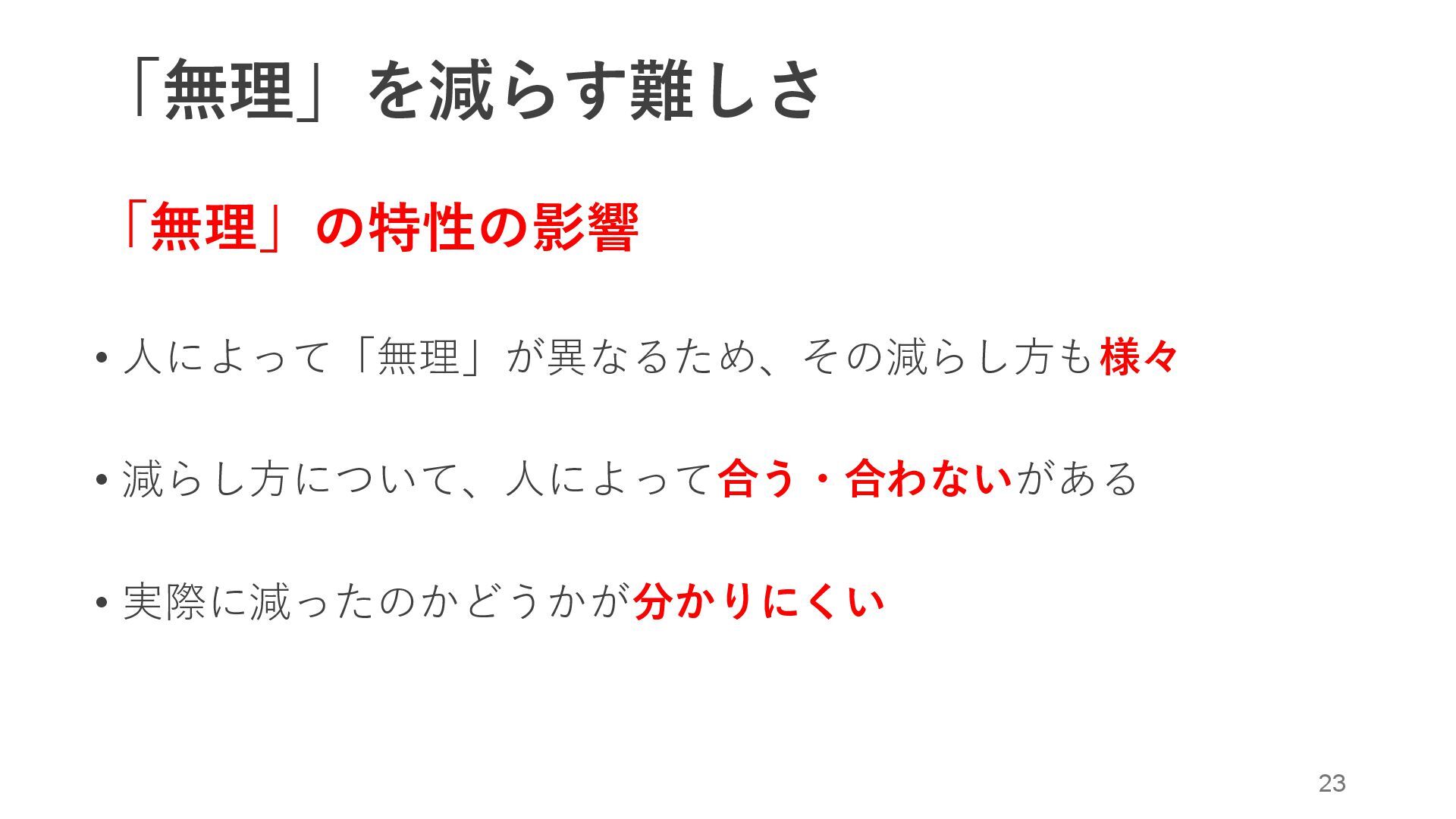 当資料では、自発的に「無理」に気付き減らすことの難しさを、「複雑系」であることに由来すると捉えています。