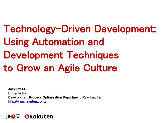 Agile Culture Jul/29/2014 Hiroyuki Ito Development Process Optimization Department, Rakuten, Inc. http://www.rakuten.co.jp/