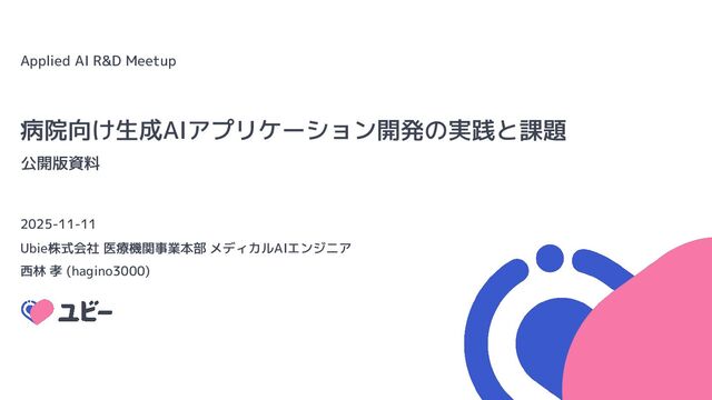 Applied AI R&D Meetup【LayerX × Ubie × Algomatic】での発表資料です。
