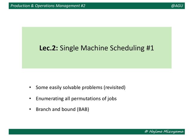 permutations of jobs (*, *, *, 1) (*, *, *, 2) 3! (*, *, *, 4) (*, *, *, 3) (*, *, *, 2) (*, *, *, 1) (*, *, 4, 1) (*, *, 3, 1) (*, *, 2, 1) (*, *, 4, 1) Branching and Search Tree (|J|=4) 4! 2! (*, *, 4, 2) (*, *, 3, 2) (*, *, 1, 2) 1! (3, 2, 4, 1) (2, 3, 4, 1)