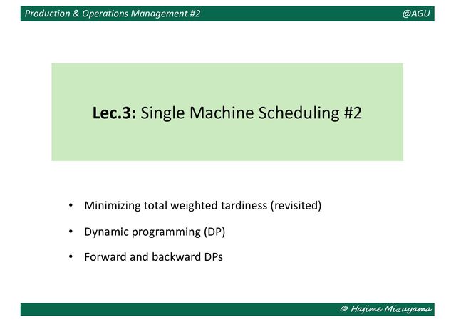 2 3 4 𝑝! 40 80 50 110 𝑤! 5 4 2 10 𝑑! 50 220 150 160 Example jobs When 𝑠𝑖𝑧𝑒 = 3, 𝑁 ∈ { 1, 2, 3 , … , {2, 3, 4}} are handled as follows: 𝑉 1, 2, 3 = min 𝑉( 1, 2 ) + 𝑤+ max 0, 𝑝+ + 𝑝, − 𝑑+ , 𝑉( 1, 3 ) + 𝑤$ max 0, 𝑝$ + 𝑝, − 𝑑$ , 𝑉( 2, 3 ) + 𝑤# max 0, 𝑝# + 𝑝, − 𝑑# 𝑉 1, 2 = min 1010, 1160, 800 = 800, 𝑠 1, 2, 3 = (3, 1, 2) 𝑉 1, 2, 4 = 840, 𝑠 1, 2, 4 = 1, 4, 2 , 𝑉 1, 3, 4 = 1310, 𝑠 1, 3, 4 = 1, 4, 3 , 𝑉 2, 3, 4 = 300, 𝑠 2, 3, 4 = 4, 2, 3 𝑁 = {1, 2}: 𝑉 = 990, 𝑠 = (1, 2) 𝑁 = {1, 3}: 𝑉 = 1160, 𝑠 = (1, 3) 𝑁 = {1, 4}: 𝑉 = 1800, 𝑠 = (1, 4) 𝑁 = {2, 3}: 𝑉 = 300, 𝑠 = 2, 3 𝑁 = {2, 4}: 𝑉 = 640, 𝑠 = (4, 2) 𝑁 = {3, 4}: 𝑉 = 960, 𝑠 = (4, 3)