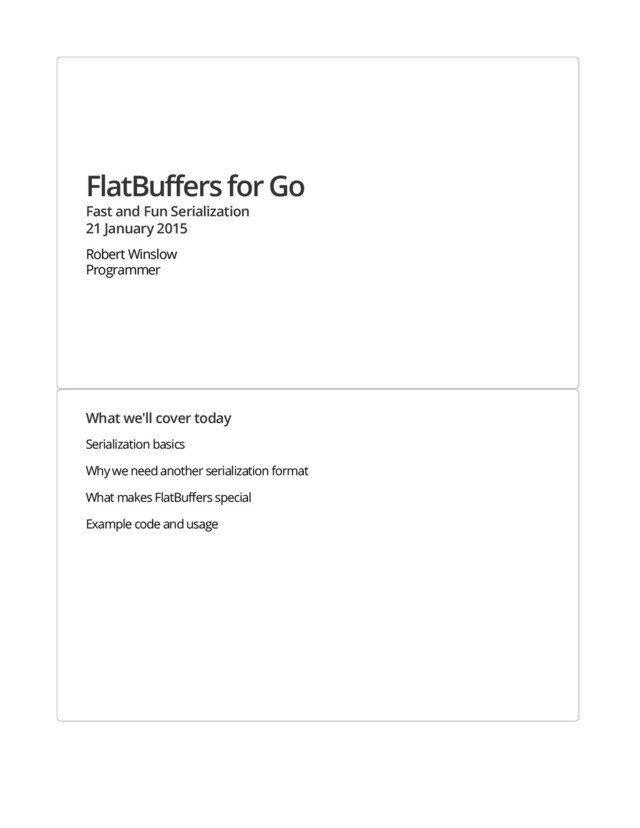 1. FlatBuffers for Go Fast and Fun Serialization 21 January 2015