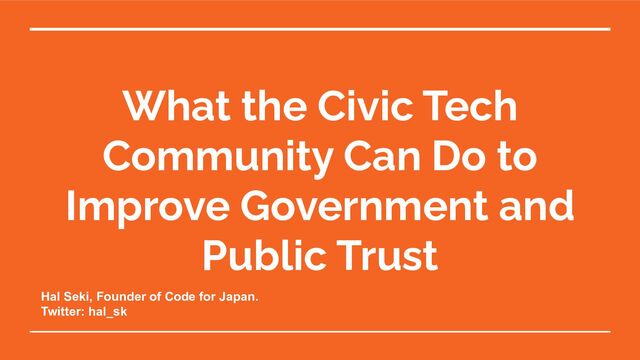 Hal Seki, a founder of Code for Japan, the largest civic tech community in Japan, explained the challenges of the existing governance model in Japan in the case of COVID19.