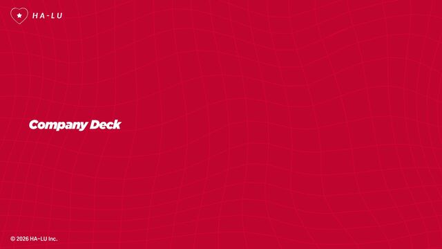 COMPANY DECK ©️ 2026 HA-LU Inc. TEAM A TEAM B TEAM C TEAM D TEAM E RESEARCH Producer Planner Operator Design PR コンテンツ事業部 ビジネス事業部 コーポレート部門 経営