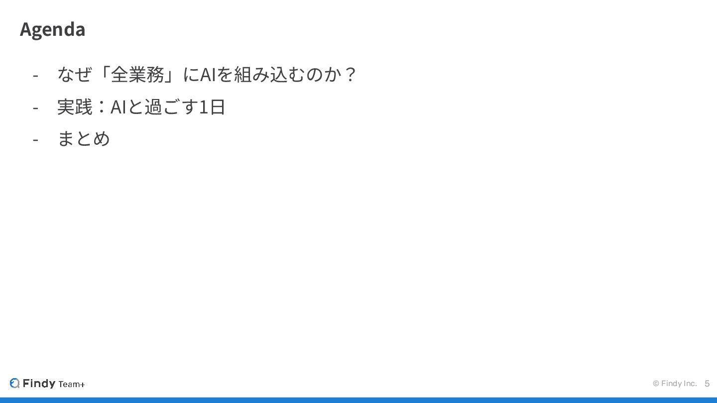 © Findy Inc. 5 Agenda - なぜ「全業務」にAIを組み込むのか? - 実践:AIと過ごす1⽇ -