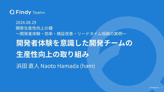 2024/08/29 開発生産性向上の鍵 〜開発者体験・効率・検証改善・リードタイム短縮の実例〜
