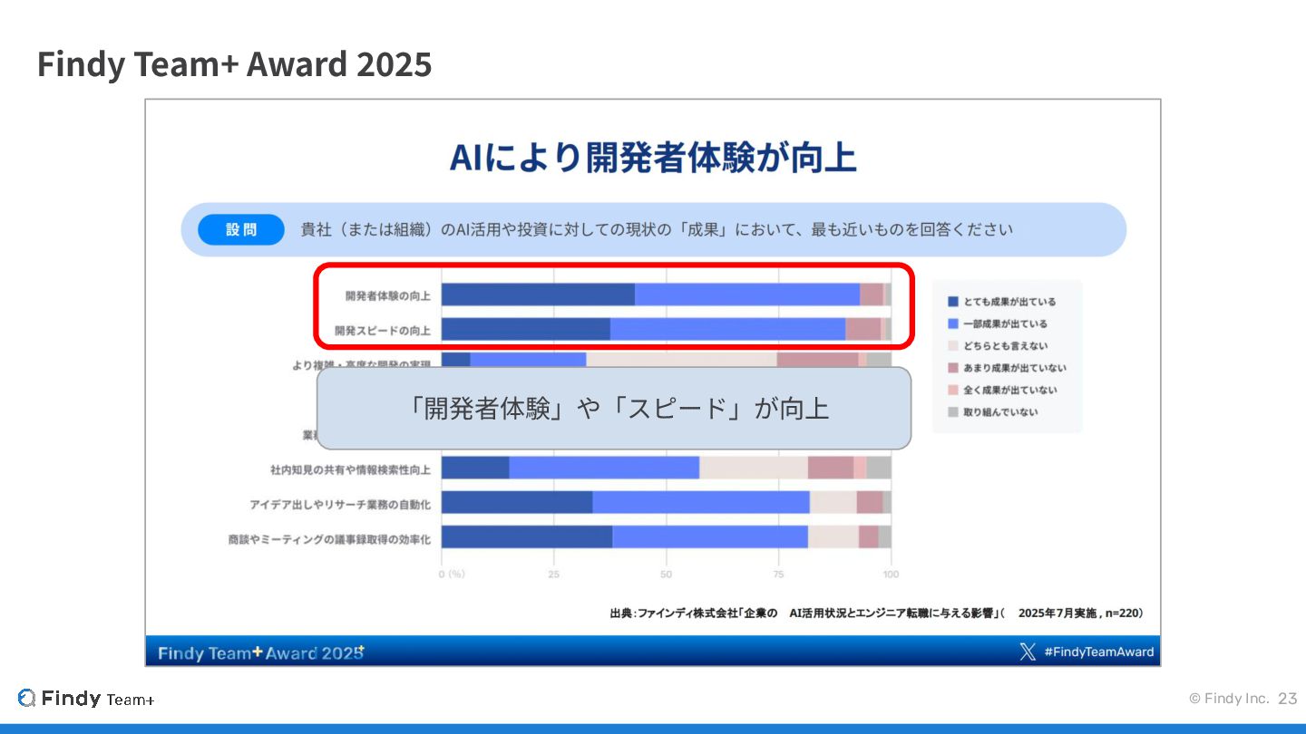 © Findy Inc. 23 Findy Team+ Award 2025 「開発者体験」や「スピード」が向上