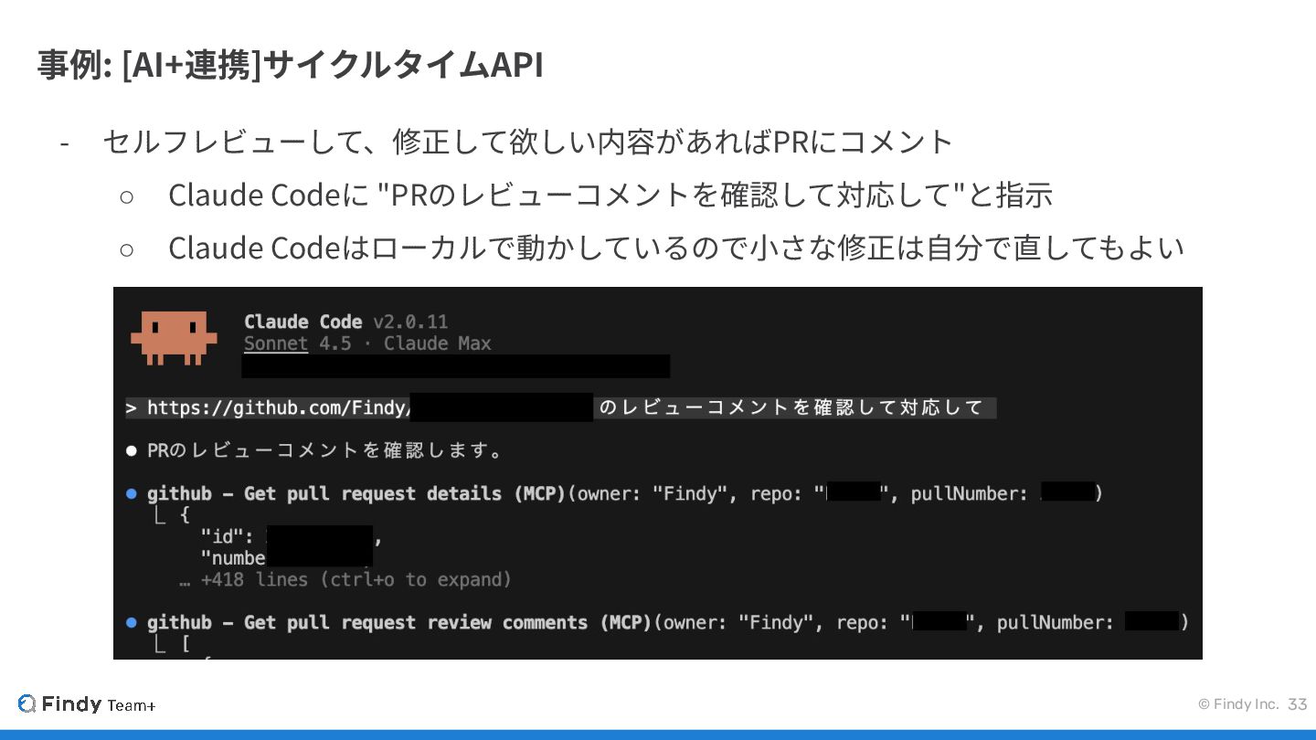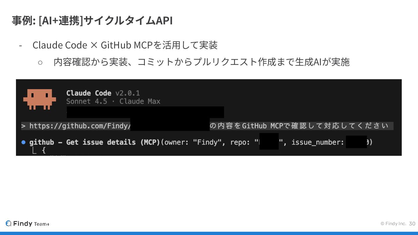 © Findy Inc. 30 事例: [AI+連携]サイクルタイムAPI - Claude Code ×