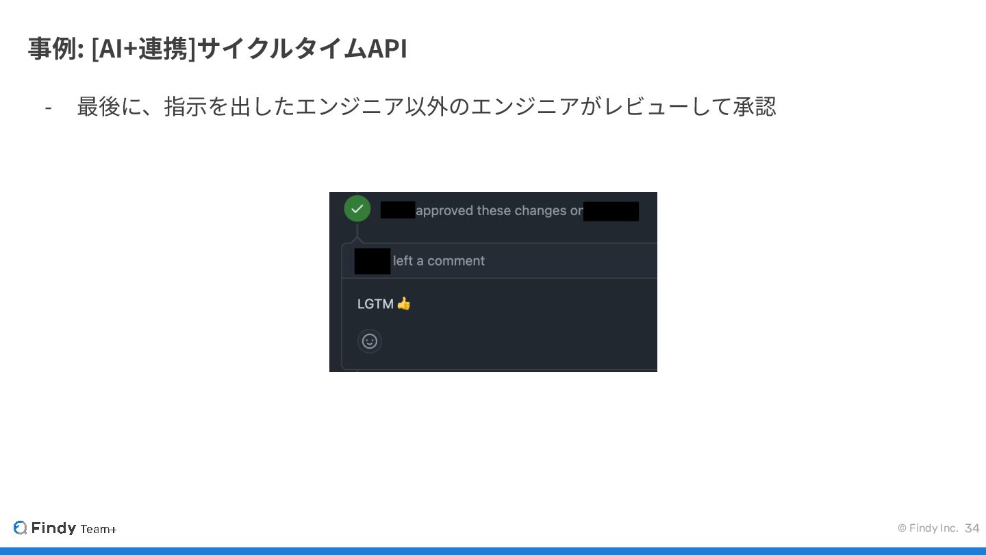 © Findy Inc. - 最後に、指⽰を出したエンジニア以外のエンジニアがレビューして承認 34 事例: [AI+連携]サイクルタイムAPI