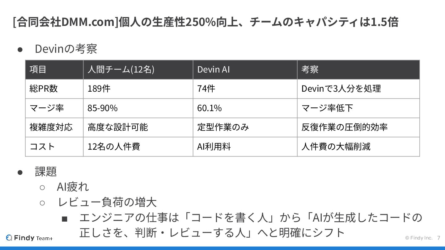 © Findy Inc. 7 • Devinの考察 • 課題 ◦ AI疲れ