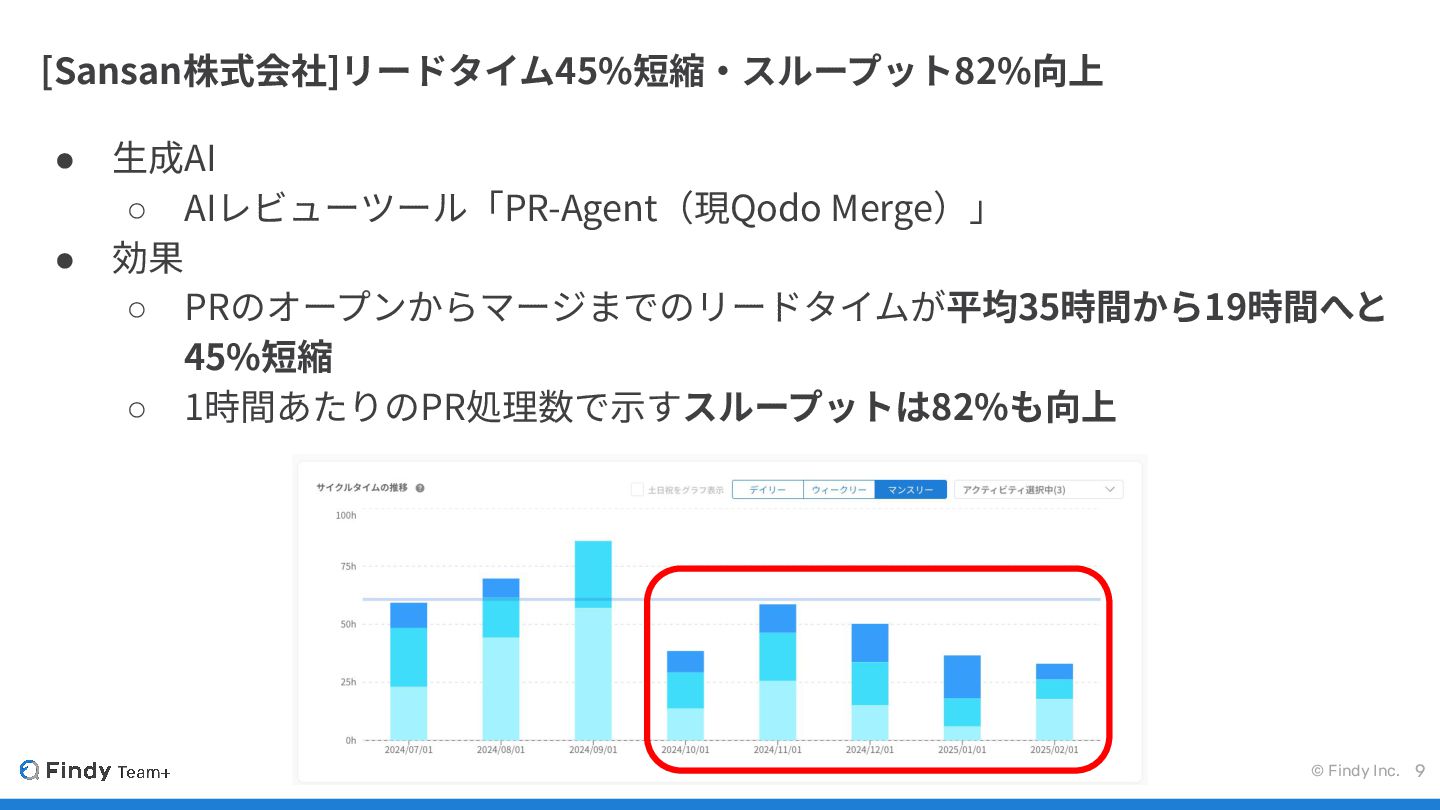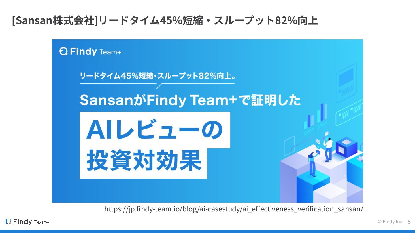 © Findy Inc. 8 [Sansan株式会社]リードタイム45%短縮‧スループット82%向上 https://jp.findy-team.io/blog/ai-casestudy/ai_effectiveness_verification_sansan/