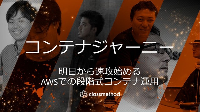 このセッションでは、コンテナを本番環境に導入して動かすまでの注意点や考慮すべき項目を、段階的にお伝えします。日進月歩で進化を続けるAmazon Container Services界隈に「一歩を踏み出していただくためのきっかけ」をつかんでいただければ幸いです。