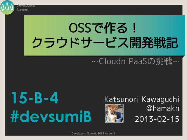 PaaSの挑戦~ 15-B-4 #devsumiB Katsunori Kawaguchi @hamakn 2013-02-15