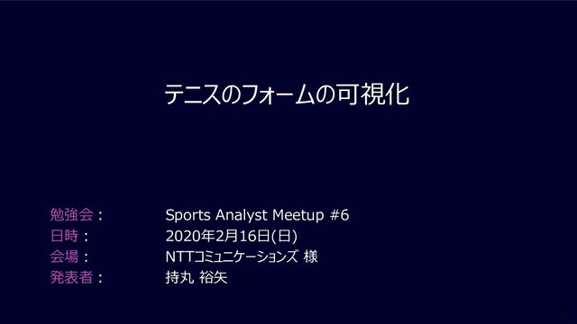 1 テニスのフォームの可視化 勉強会︓ Sports Analyst Meetup #6 ⽇時︓ 2020年2⽉16⽇(⽇) 会場︓