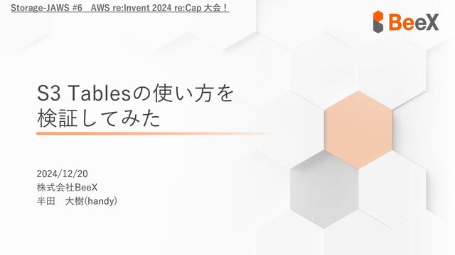 「Storage-JAWS #6 AWS re:Invent 2024 re:Cap 大会!」での発表資料です。