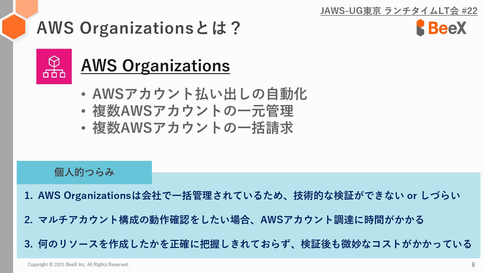 2024 BeeX Inc. All Rights Reserved. 2 自己紹介 JAWS-UG東京 ランチタイムLT会 #22 Name | 半田 大樹(Handa Daiki) Corp | 株式会社BeeX Job | クラウドエンジニア Like | Amazon S3 Hobby | クラウド資格取得、猫のお世話 ×15 ×10 ×10 @handydd18 2024 Japan AWS ALL Certifications Engineer 2023 Japan AWS Top Engineer 2023 Japan AWS ALL Certifications Engineer 2022 APN ALL AWS Certifications Engineer 執筆書籍 →Data