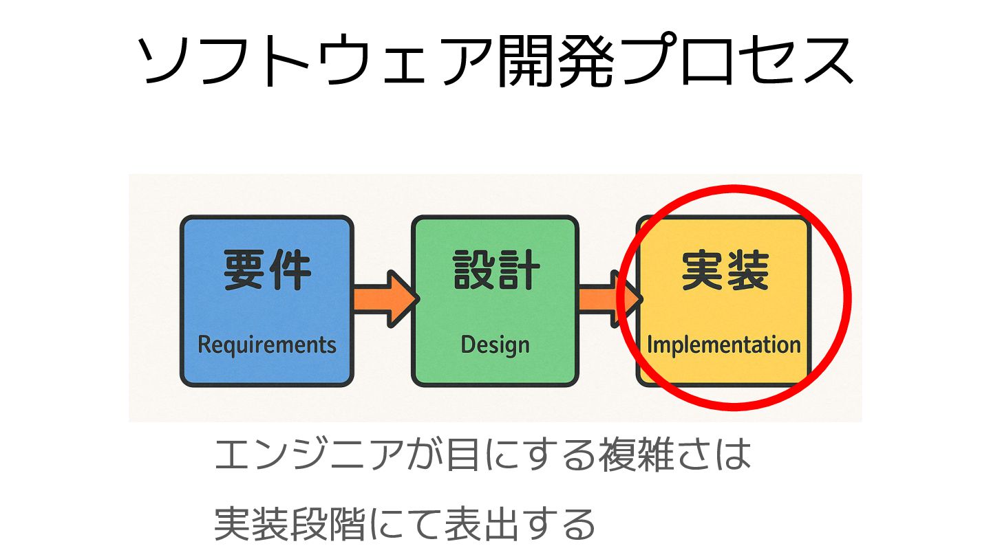 エンジニアが目にする複雑さは 実装段階にて表出する ソフトウェア開発プロセス
