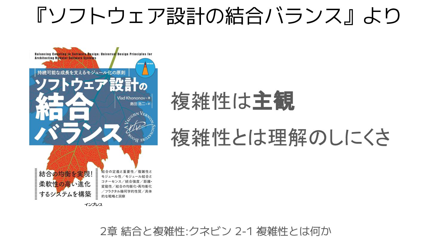 『ソフトウェア設計の結合バランス』より 2章 結合と複雑性:クネビン 2-1 複雑性とは何か 複雑性とは理解のしにくさ 複雑性は主観