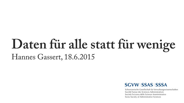 Daten für alle statt für wenige Hannes Gassert, 18.6.2015