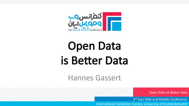 Open%Data%% is%Be,er%Data% Hannes%Gassert% Interna1onal%Exhibi1on%Center,%University%of%Shahid%Behesh1% 3rd%Iran%Web%and%Mobile%Conference% Open%Data%ist%Be,er%Data%