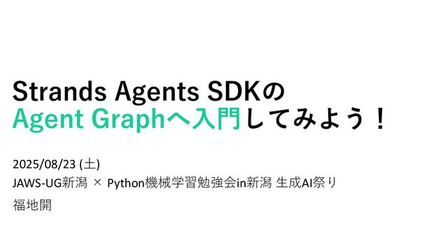 Strands Agents SDKの Agent Graphへ入門してみよう! 2025/08/23 (土) JAWS-UG新潟 × Python機械学習勉強会in新潟