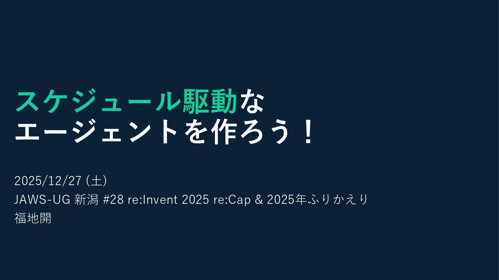 スケジュール駆動な エージェントを作ろう! 2025/12/27 (土) JAWS-UG 新潟 #28 re:Invent 2025 re:Cap