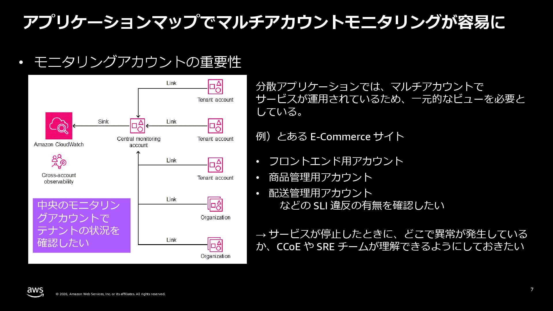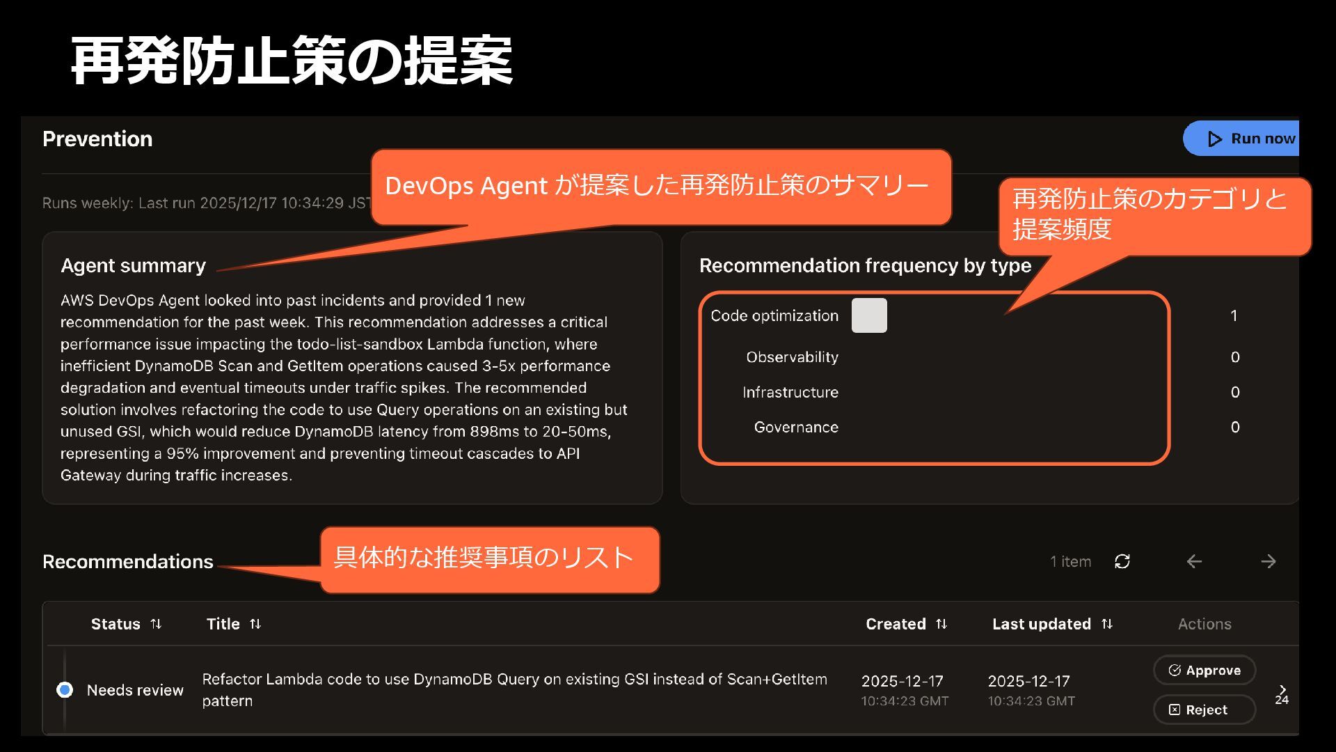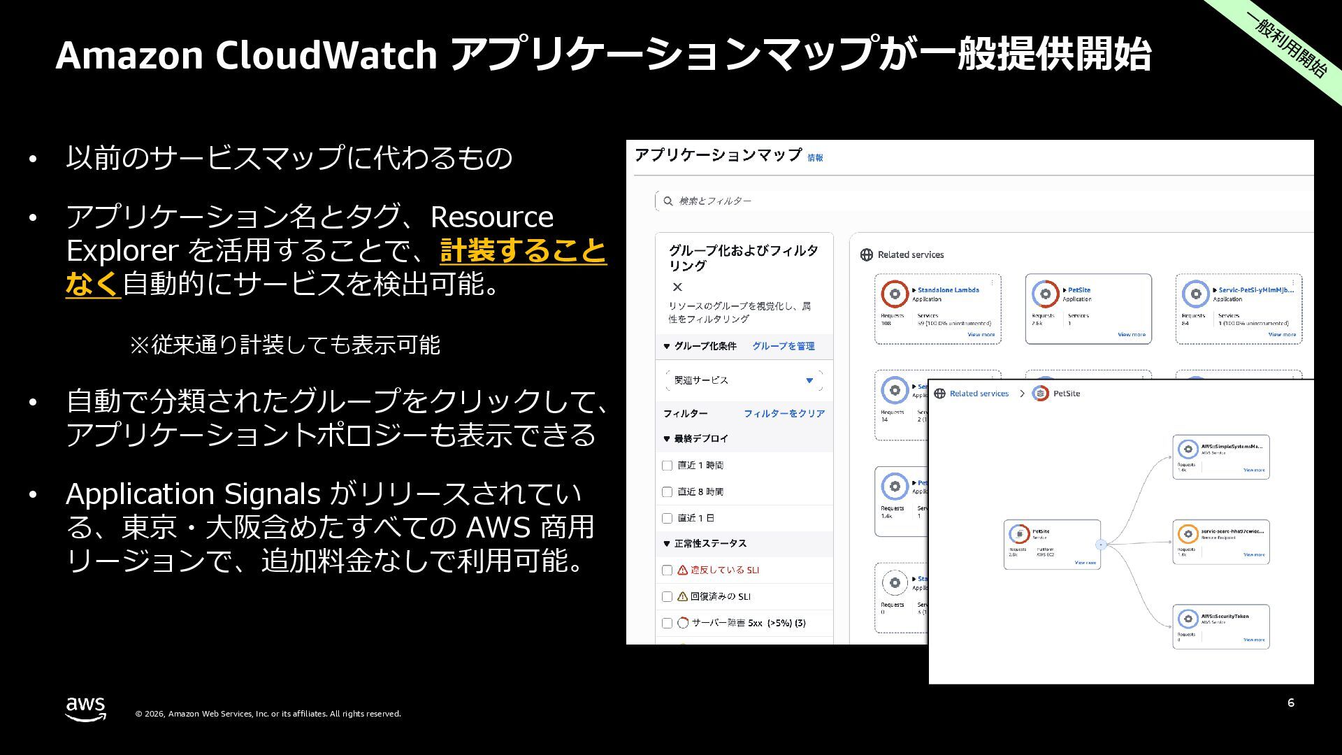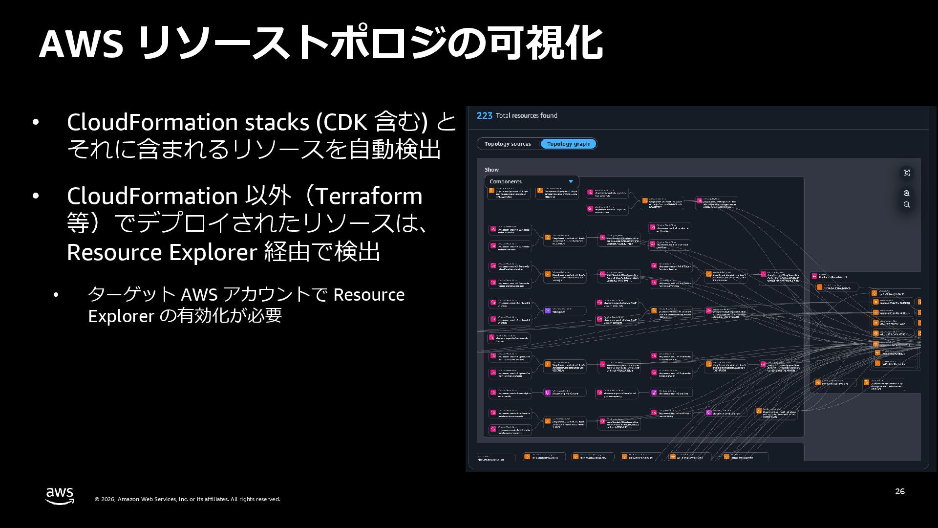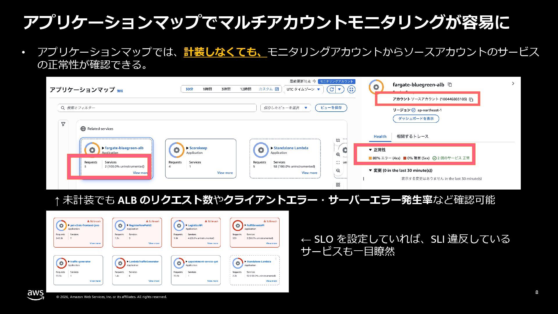 rights reserved. 27 DevOps Agent CloudWatch Investigations 料金体系 Preview 期間は無料 無料 リージョン Preview 期間は us-east-1 のみ (対象リソースは他リージョンも可) 複数リージョン対応 UI DevOps Agent Web App マネジメントコンソール クロスアカウント対応 可 要 CloudWatch Cross-Account o11y 3rd Party tool サポー ト Datadog, Dynatrace, New Relic, Splunk, ServiceNow, Slack, PagerDuty 等にデフォルト対応 MCP サーバーにより拡張可能 不可 リポジトリ& CI/CD パイプライン連携 GitHub, Gitlab 不可 修復アクション 提案のみ SSM Automation Runbook (実行にはユーザー承認が必要) Runbook 可 不可 サポート連携 可(Basic/Developer は制限有り) 不可 CloudWatch Investigations との比較