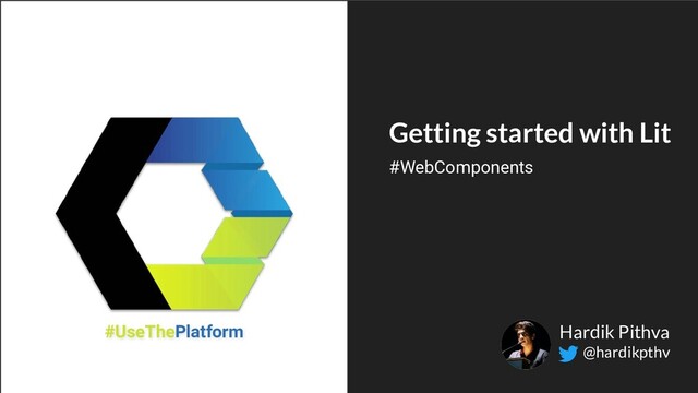 you write HTML templates in JavaScript using `template literals` • Lazily rendered • Possible to style, bind to attributes, properties, and add event listeners lit-html @hardikpthv // Import lit-html import {html, render} from 'lit-html'; // Define a template const eventTemplate = (eventName) => html`<h1>Welcome to ${eventName}</h1>`; // Render the template to the document render(eventTemplate('FrontMania'), document.body); index.js