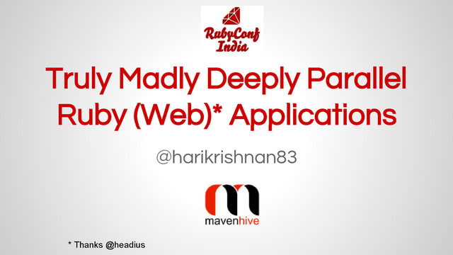 Traditional Ruby application architecture involves multiple processes to achieve parallelism. This talk covers below topics.