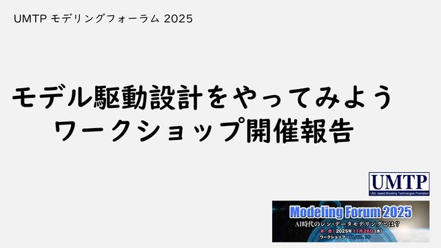 モデル駆動設計をやってみよう ワークショップ開催報告 UMTP モデリングフォーラム 2025