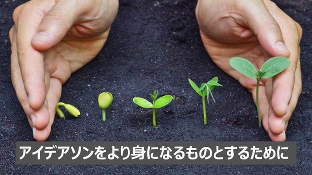 質の良い アイデア 主催者が得られるもの 参加者が得られるもの 強いチームと主催者で アイデアを育てること コミュニケーションから 多様な意見や考え方 主催者/参加者が得られるもの