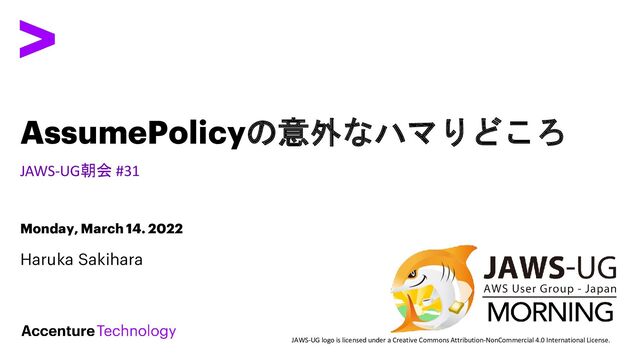 • アクセンチュア株式会社 テクノロジーコンサルティング本部所属 • 普段はクラウドインフラ構築の支援をしておりま す • アプリケーション……プライベートだとGo, 仕事だ と少しPython • インフラ……ほとんどAWS This presentation makes reference to marks owned by third parties. Unless otherwise noted, all such third-party marks are the property of their respective owners. No sponsorship, endorsement or approval of this content by the owners of such marks is intended, expressed or implied.
