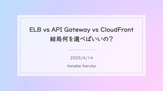 ELB vs API Gateway vs CloudFront 結局何を選べばいいの? 2025/4/14 tanabe haruko