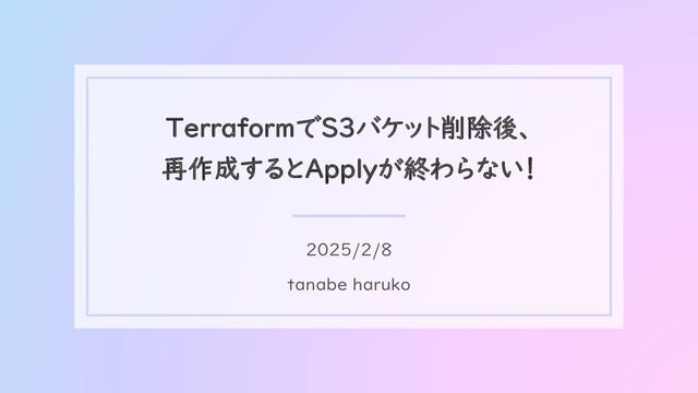 TerraformでS3バケット削除後、 再作成するとApplyが終わらない! 2025/2/8 tanabe haruko